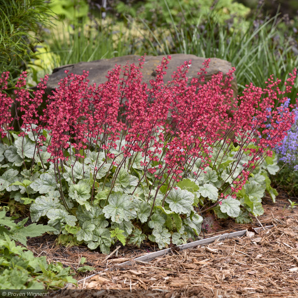 Dark green veins crisscross silvery green leaves. This is a deep, rich green instead of a chartreuse yellow like 'Appletini'. Even while the foliage is lovely on its own, this plant truly shines because of its amazing lengthy blooming season. Early to midsummer sees the production of the bicolor flowers, which have light pink bases and dark pink tips. Wonderful!