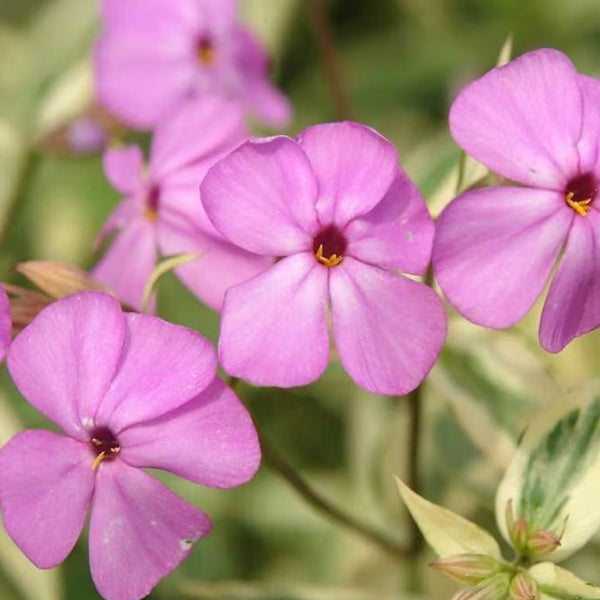 A vigorous and disease-resistant phlox variety with creamy white and green foliage. Pinkish-lavender flowers emerge in spring. A perfect accent for borders, beds, and containers. An herbaceous perennial.