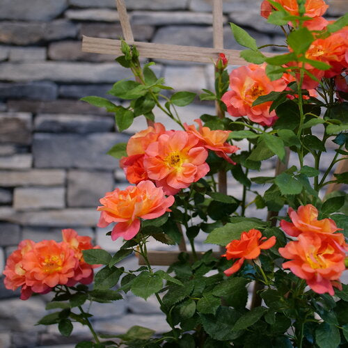 Warm up your view with Rise Up Emberays® rose. Its glowing orange and yellow blooms arrive continuously throughout the summertime. As they mature they soften to a pale pink and fold up like a traditional garden rose, giving them more range than your favorite actor! Makes a lovely low hedge, addition to your cut flower garden, or as a feature against your porch, climbing up a trellis. It can fill so many roles thanks to a versatile habit, it grows nicely on its own, but looks lovely trained upward with support as well. Excellent garden performance and good disease resistance allows you sit down, relax, and enjoy the view.
