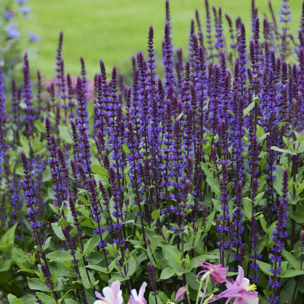 Spikes of violet-blue flowers on striking purple-black stems rise above the contrasting gray-green leaves. Especially effective in mass plantings, but also nice for mixed borders and containers. A great fresh or dried cut flower. An herbaceous perennial.