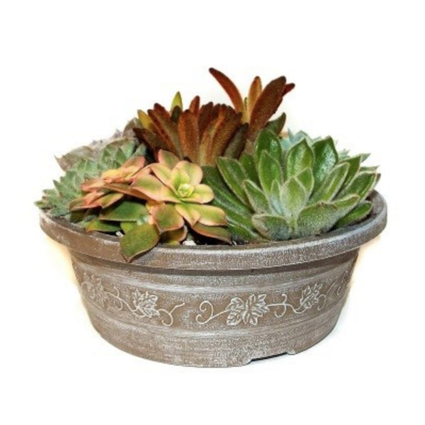 Introduce a touch of natural elegance to your space with our 8" Savannah Bowl Succulent arrangement. This beautifully designed bowl features a curated mix of easy-care succulents, thriving in bright, indirect sunlight and requiring minimal watering, ideal for both busy individuals and those new to gardening. The 8-inch Savannah Bowl, with its sleek and modern design, adds a sophisticated flair to any decor, making it perfect for centerpieces, coffee tables, or office desks. Each succulent assortment is uniquely selected, ensuring a diverse array of textures and colors that bring a vibrant and stylish accent to your home or workspace.