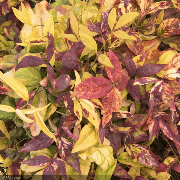 One of the best coloring nandinas! New foliage has fresh green coloration, with red highlights as it ages. Brilliant red foliage develops in the fall and persists through winter. Neat, low evergreen mounds are terrific for borders, massing and containers. Requires little care and no pruning. Developed in New Zealand.