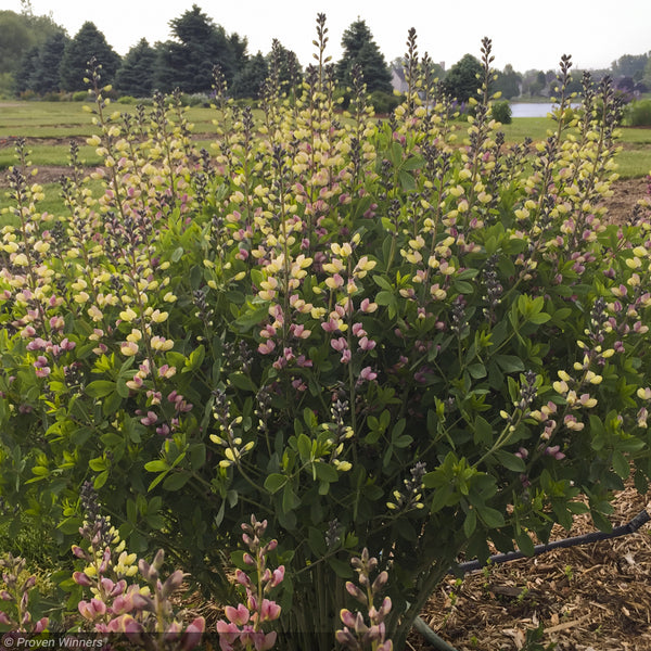 About 20 species of herbaceous perennials in the genus Baptisia are found primarily in dry forest and grassland regions of the eastern and southern United States. They are deep-rooted plants that have good resistance to erosion and drought, and they are frequently found growing in dry, gravelly soil. The inflated seed pods accompany the beautiful terminal flower spikes. Pollinators like as butterflies are drawn to the pea-like blossoms.