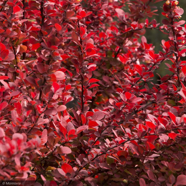 This award winning barberry sports a unique color combination for an easy care shrub. New spring foliage starts out a vibrant coral and ages to a ruby red that lasts into fall. Useful as a vertical element in borders, landscapes, or containers.