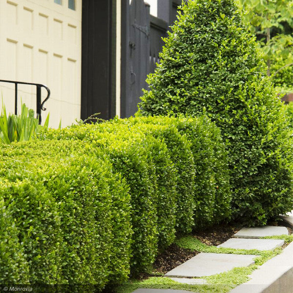 A vigorous evergreen shrub with bright green foliage that retains good color throughout winter. The upright, naturally cone-shaped habit makes it an excellent candidate for topiary forms, and a striking container or formal garden accent. Use in mass plantings to create either a free-form or a sculpted hedge.