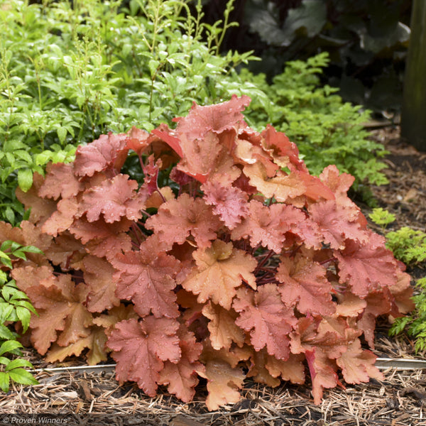 Dark green veins crisscross silvery green leaves. This is a deep, rich green instead of a chartreuse yellow like 'Appletini'. Even while the foliage is lovely on its own, this plant truly shines because of its amazing lengthy blooming season. Early to midsummer sees the production of the bicolor flowers, which have light pink bases and dark pink tips. Wonderful!