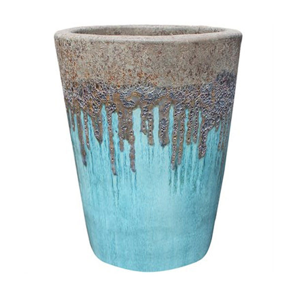 Michael Carr 23.6in Tall Round Planter, Volcanic Milky Blue