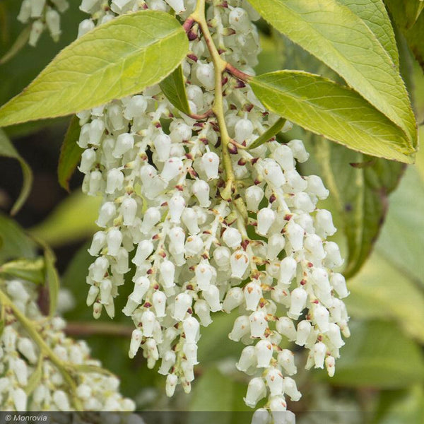 Gracefully arching, striking red stems with colorful, creamy white and green mottled foliage with scarlet accents. Showy, drooping clusters of white flowers add a nice touch to cut arrangements. Effective as hedge, or clip to create an attractive groundcover. A beautiful, natural woodland companion to rhododendrons and ferns. Evergreen.