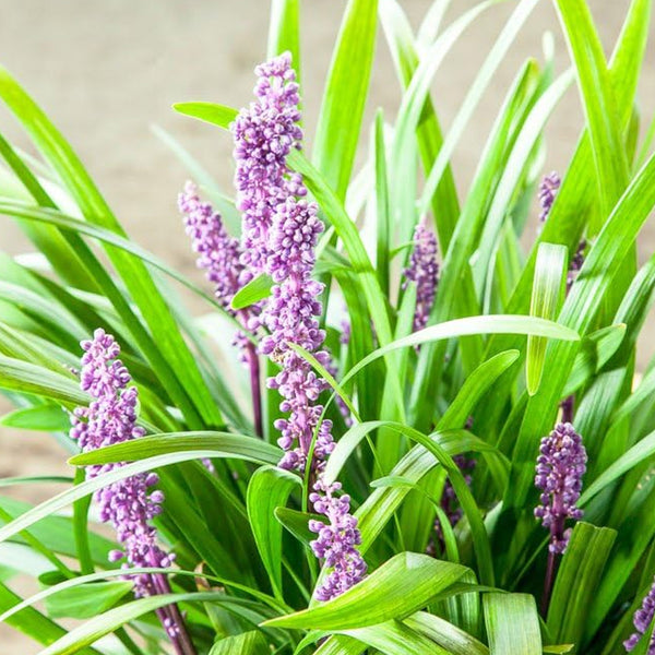 Showy spikes of deep purple flowers rise above the arching, dark green, grass-like foliage, followed by clusters of black ornamental berries. A superb groundcover, edging or border plant for partially shaded woodland areas. Excellent for use along rock-edged pools and waterfalls. Tolerates drier conditions when established. Evergreen.