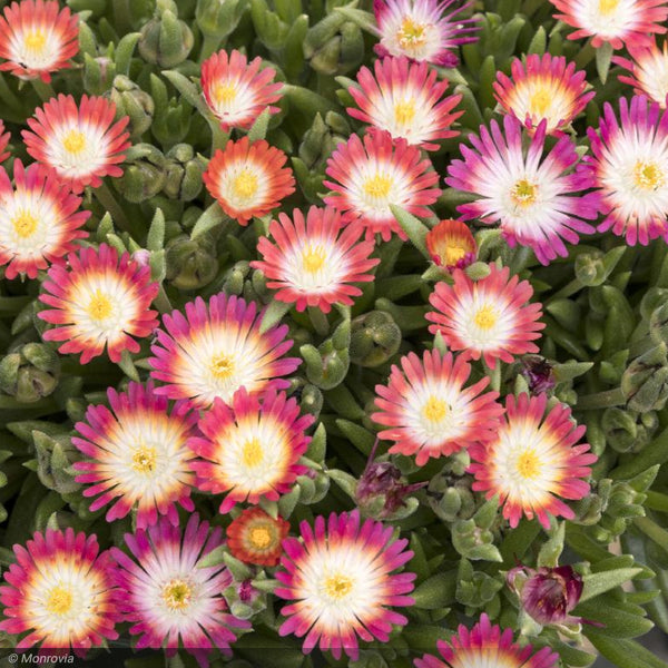 As long as the sun is out, this sturdy little evergreen perennial will shine! Bright, multi-colored flowers are fringed with ruby red tips. Forms a dense, weed-smothering mat, perfect as a groundcover or accent for rock gardens and containers. Hardy and adaptable, yet non-invasive.