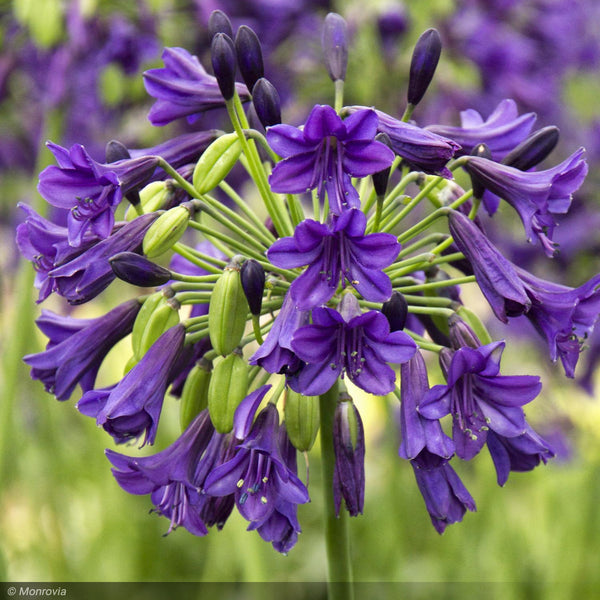 With clusters of deep violet blooms—a tint that is exclusive to agapanthus—this evergreen perennial steals the stage. chosen for their robust stems that keep the blooms upright and prevent them from flopping, as well as their greater durability. adds gorgeous color and luxuriant texture, for a striking appearance, plant in large quantities.
