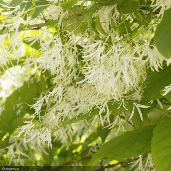 Prized large shrub or small tree with upright branches forming dome shape. Soft green leaves back magnificent clusters of fringe-like blooms. A terrific accent for the landscape. Deciduous.