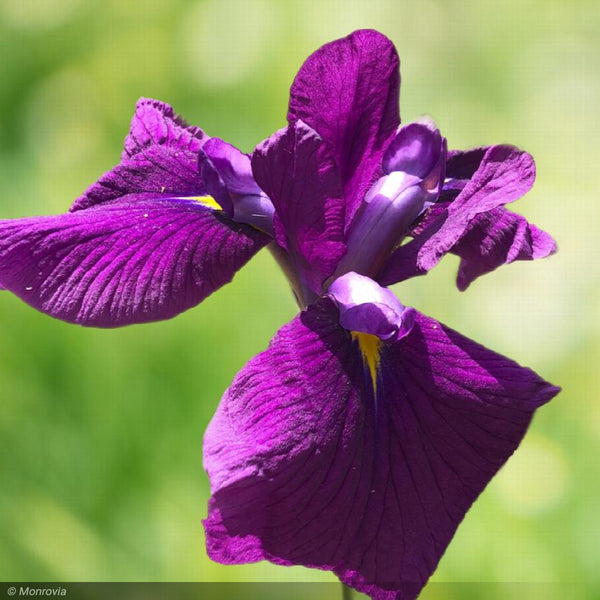 Big deep-purple flowers have a flag of bright yellow at the base of the petals. Blooms rise above the narrow green foliage on stiff stems - a great pick for cut flower arrangements. Excellent near water features, in damp borders, at the edge of ponds or streams, or even in pots plunged halfway to the rim in water gardens. An herbaceous perennial.